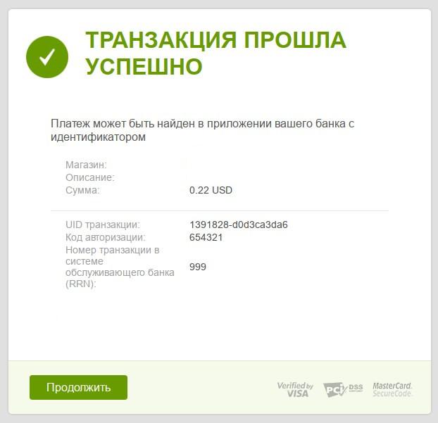 4. Об успешном завершении платежа вы будете проинформированы сообщением следующего вида: